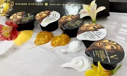 100 SET Weight : 40 lbs Step 1: Gold Soak Step 2: Gold Scrub Step 3: Gold Mud Mask Step 4: Gold Massage Cream Step 5: Gold body butter