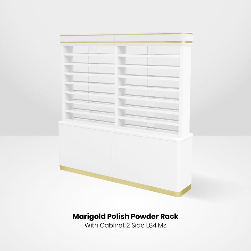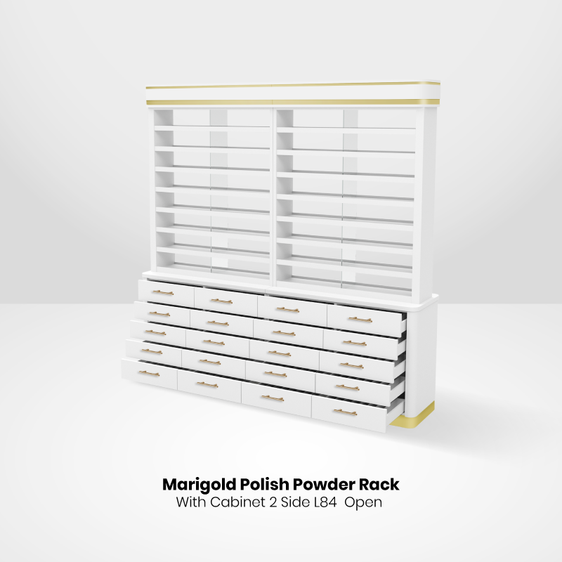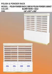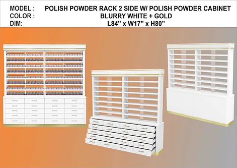 This can hold up to more than 4,000 bottles of polish/gel or 1,670 powder or 2,000 bottles and 835 powders if combined.